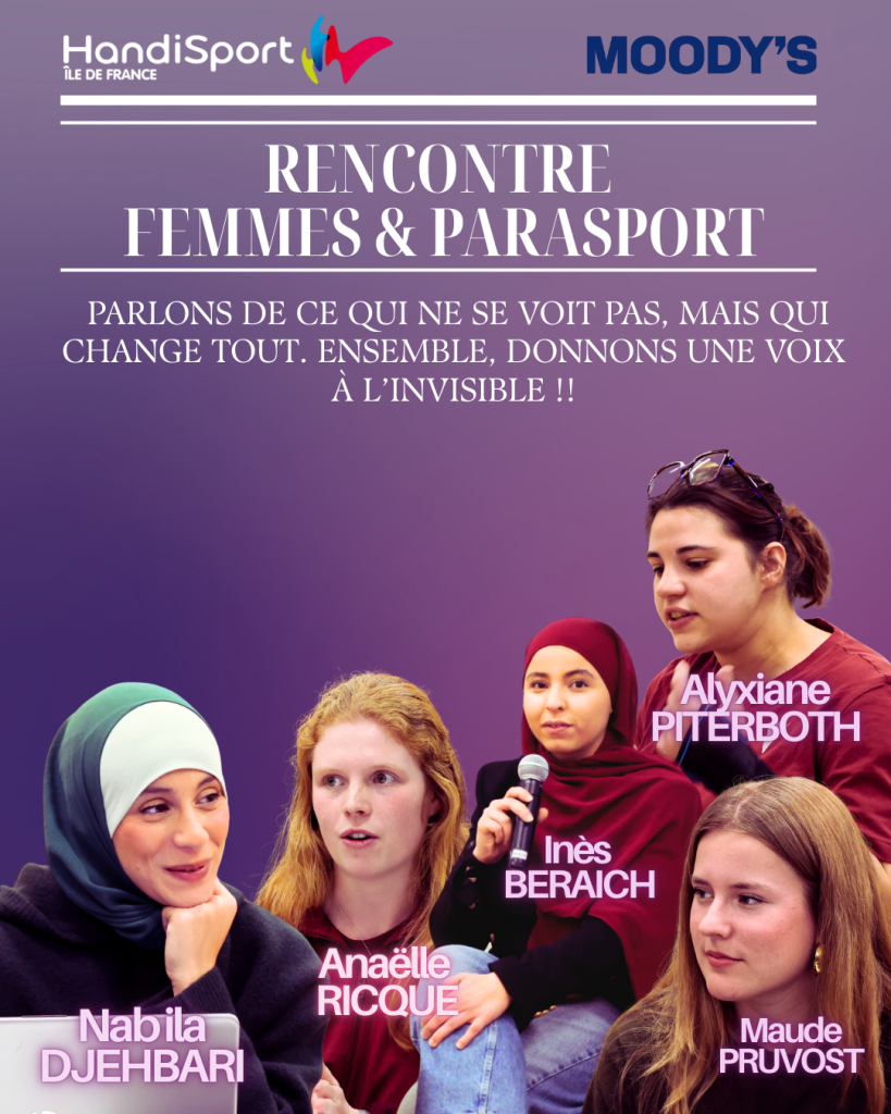 Nous tenons à remercier chaleureusement Maud Pruvost, Inès Beraich, ainsi que Alyxiane, Anaëlle, Nabila et Inès du CRIFH pour leurs témoignages et leur engagement tout au long de cette journée. Nous souhaitons également adresser une pensée particulière à Faiza Reny, vice-présidente et référente du parasport féminin au CRIFH, dont l’implication et l’importance au sein de notre structure sont essentielles, même si elle n’a pas pu être présente. Notre gratitude s’étend à Noémie Heuland, à Delene, à Hadrien, ainsi qu’à l’ensemble des collaboratrices et collaborateurs de Moody’s France et New York, dont la participation, l’écoute et l’énergie ont permis de faire de cet événement un moment riche, authentique et profondément humain.