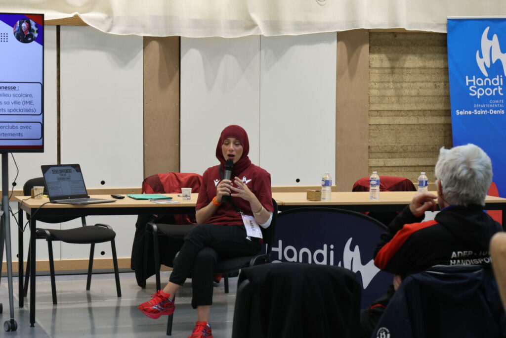 « Le parasport féminin et la prévention des violences sexistes et sexuelles », animé par Ines, Faiza & Julie, a soulevé les problématiques spécifiques rencontrées par les femmes dans le sport, avec une forte dimension de sensibilisation et de prévention avec des exemples concrets, des lois officielles, et des numéros d’urgence pour être averti et éclairé sur un sujet encore en démocratisation.