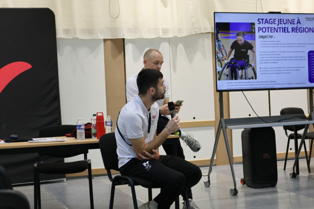 « Les jeunes et les formations », mené par Nathan et Eymeric, cet atelier a exploré les parcours de formation pour les jeunes, et les passerelles vers l’engagement associatif, professionnel ou bénévole dans le handisport.