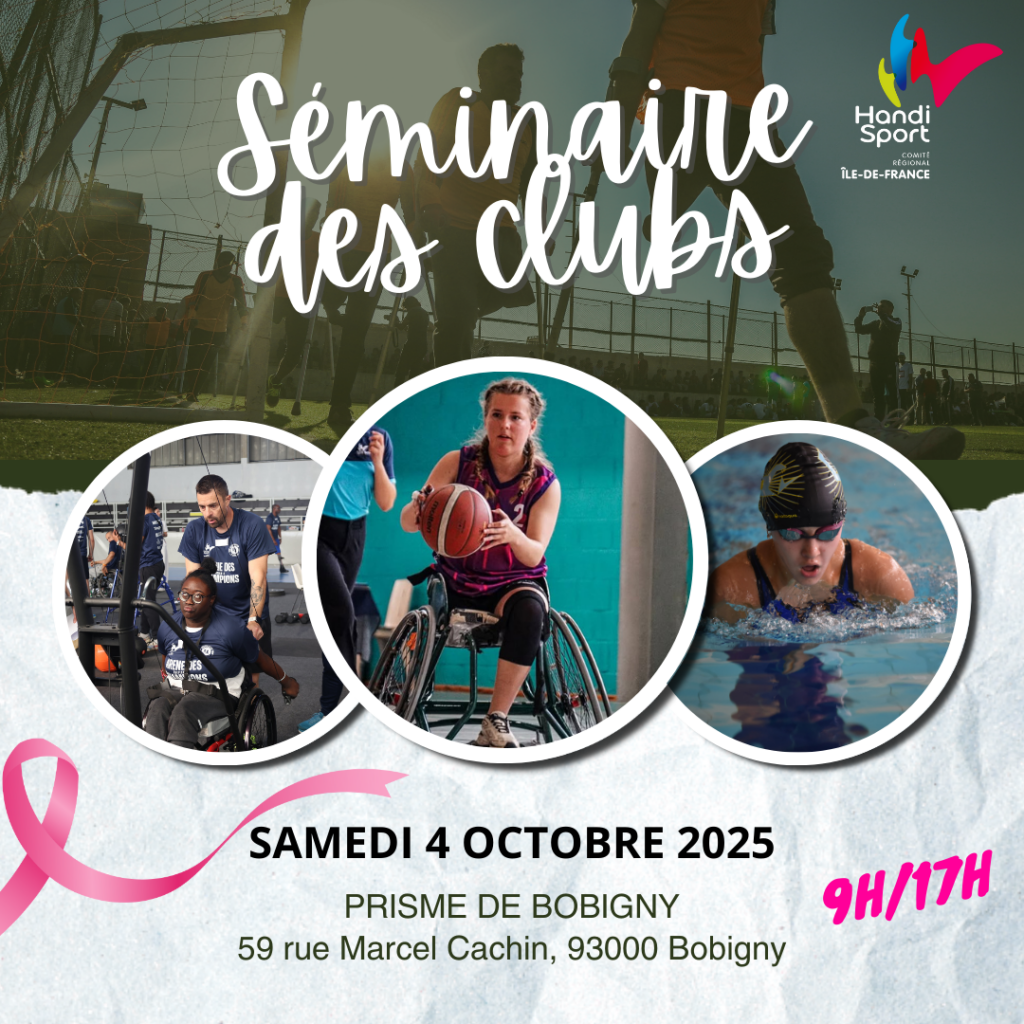 Le CRIFH organise son Séminaire des Clubs 2025 le 4 octobre à Bobigny, une journée gratuite et conviviale mêlant rencontres, ateliers et Octobre Rose, afin de renforcer le réseau handisport francilien et préparer la nouvelle saison.