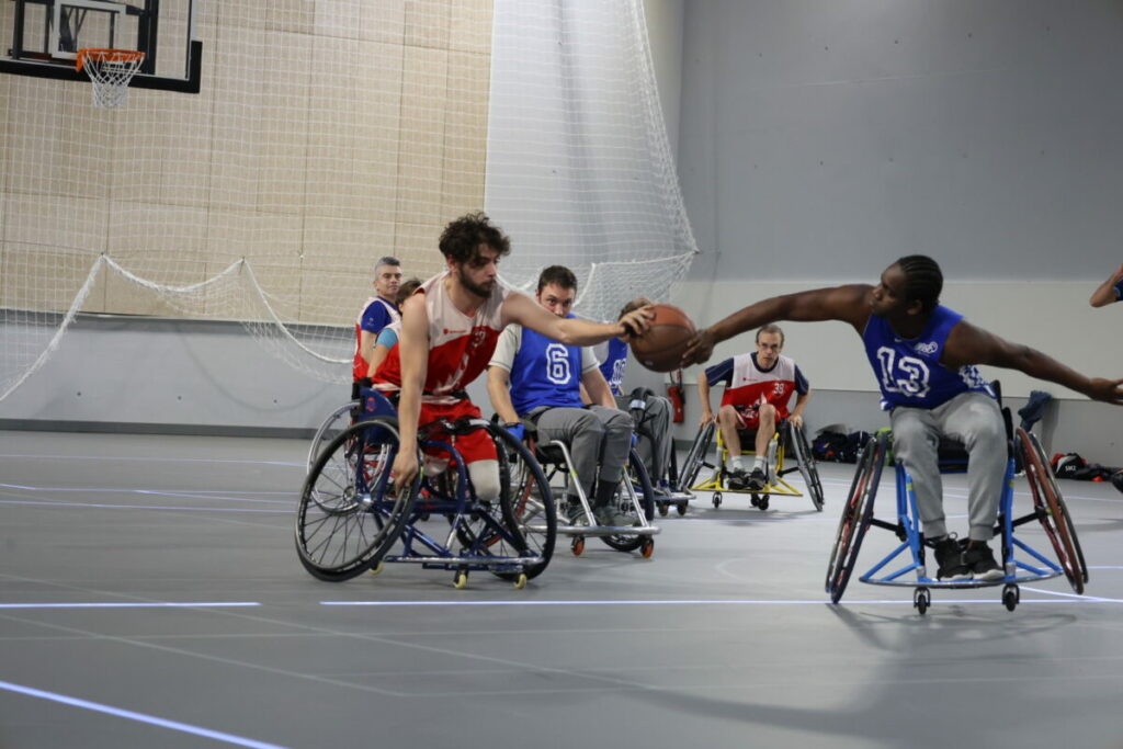 Le basket fauteuil se joue à 5 contre 5 et s’adresse aux personnes en situation de handicap touchant à minima la partie inférieure ou supérieure du corps : paraplégie, poliomyélite, amputation.